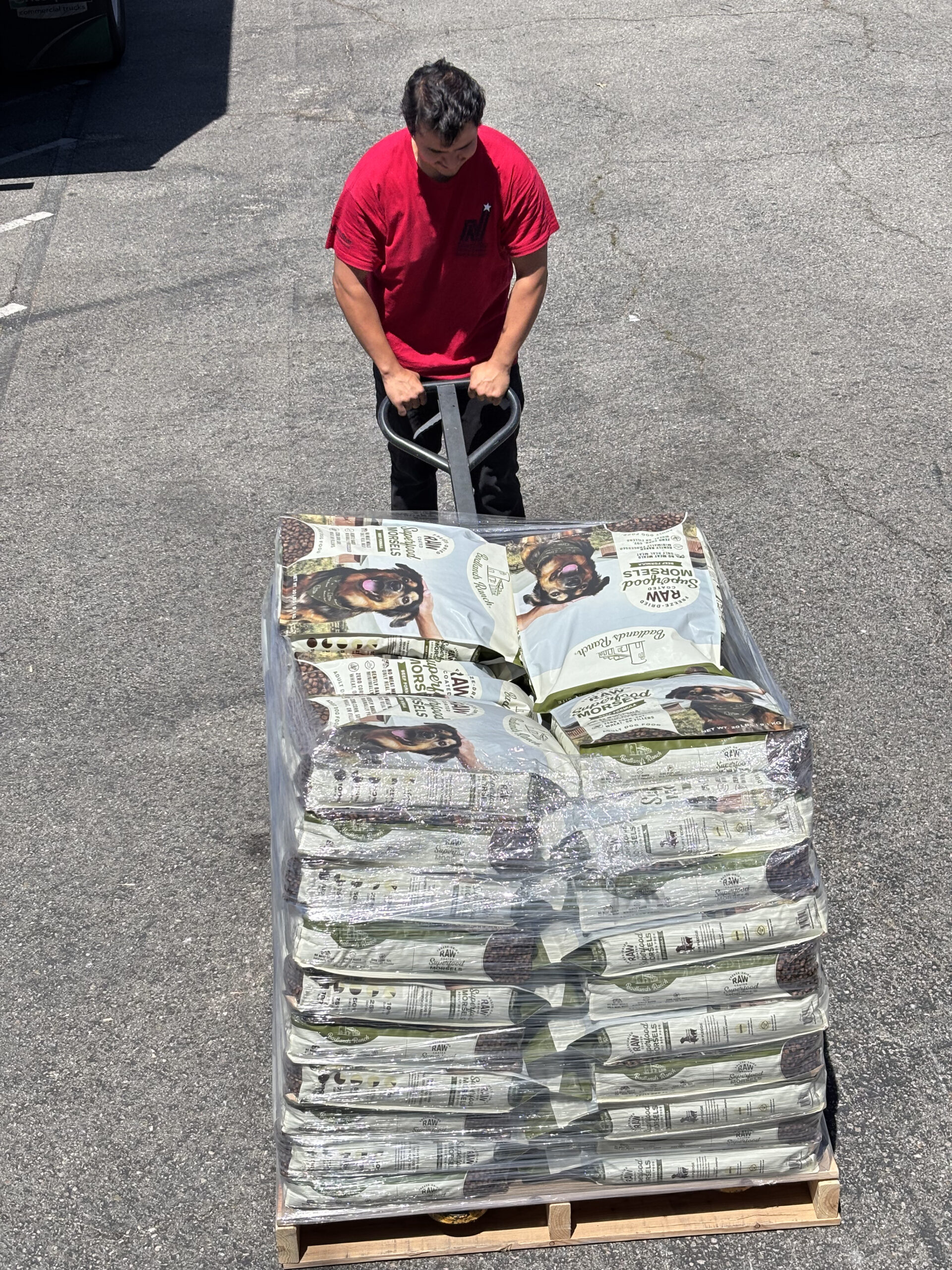 These are photos from a move from April 23, 2026. We moved 40 donated pallets of dog food to Paws for Life’s facilities.